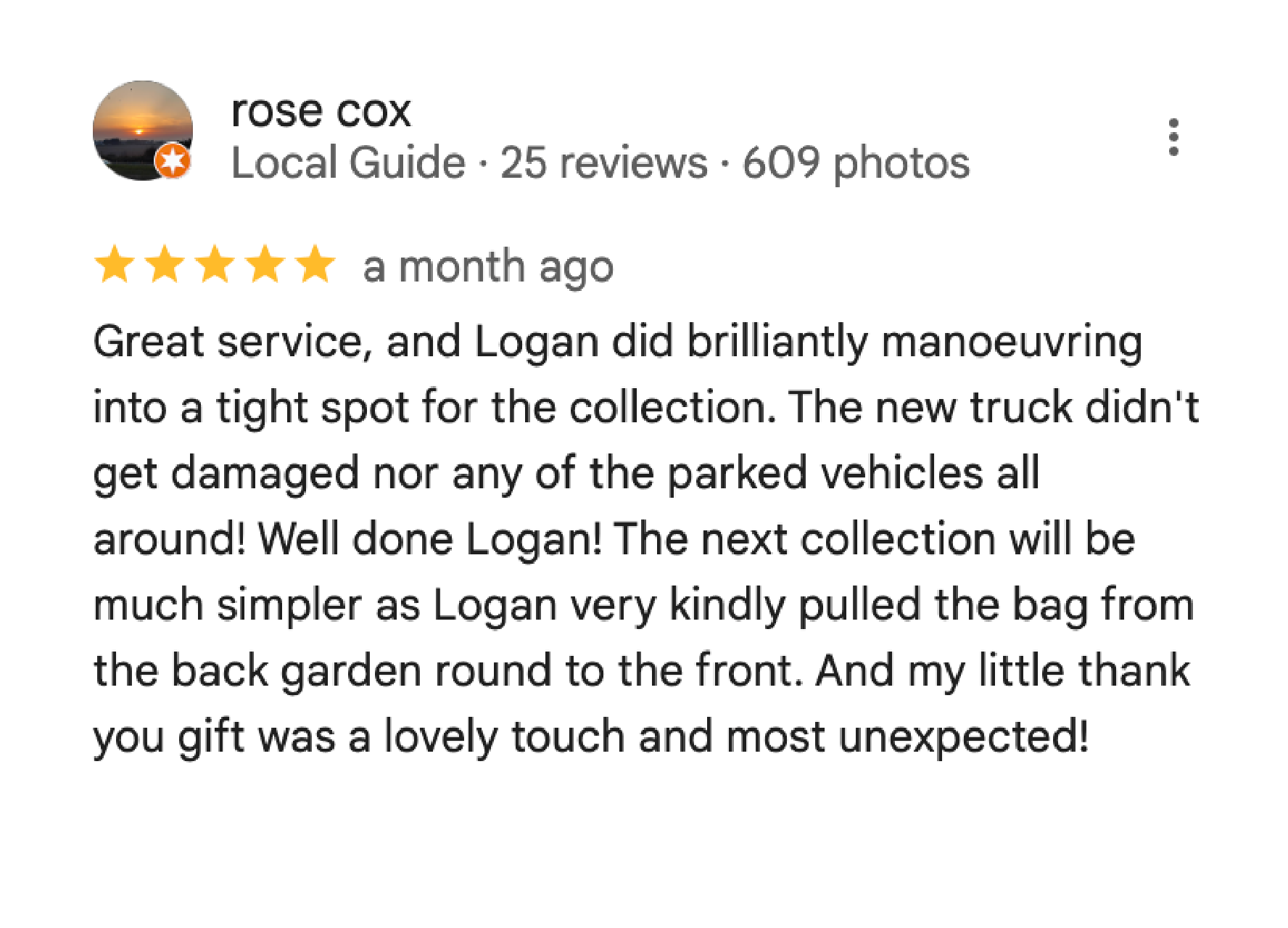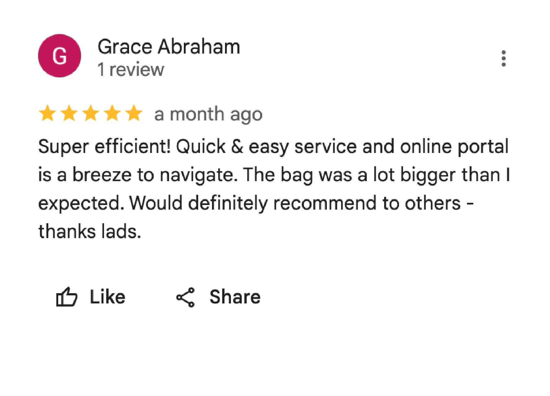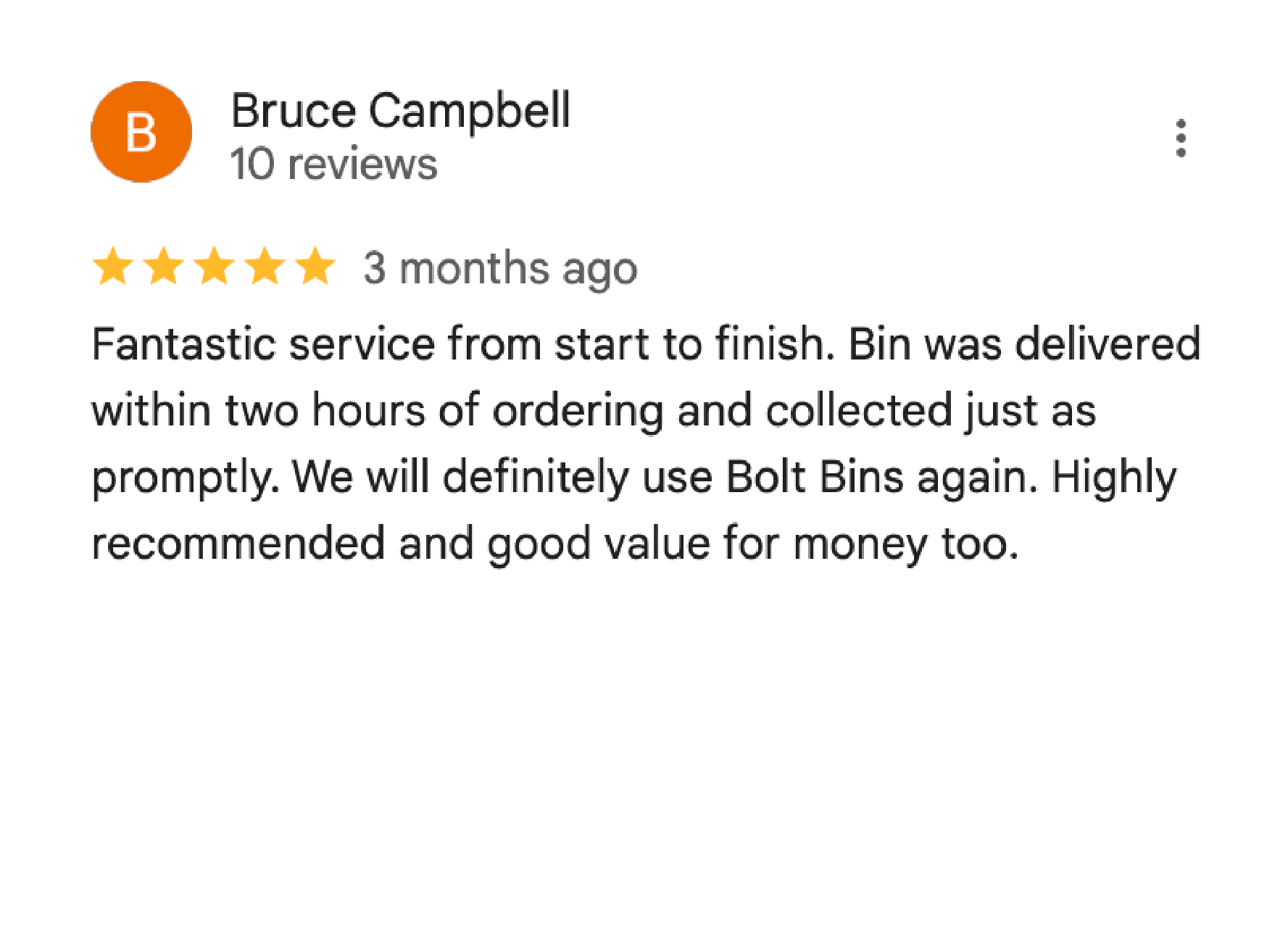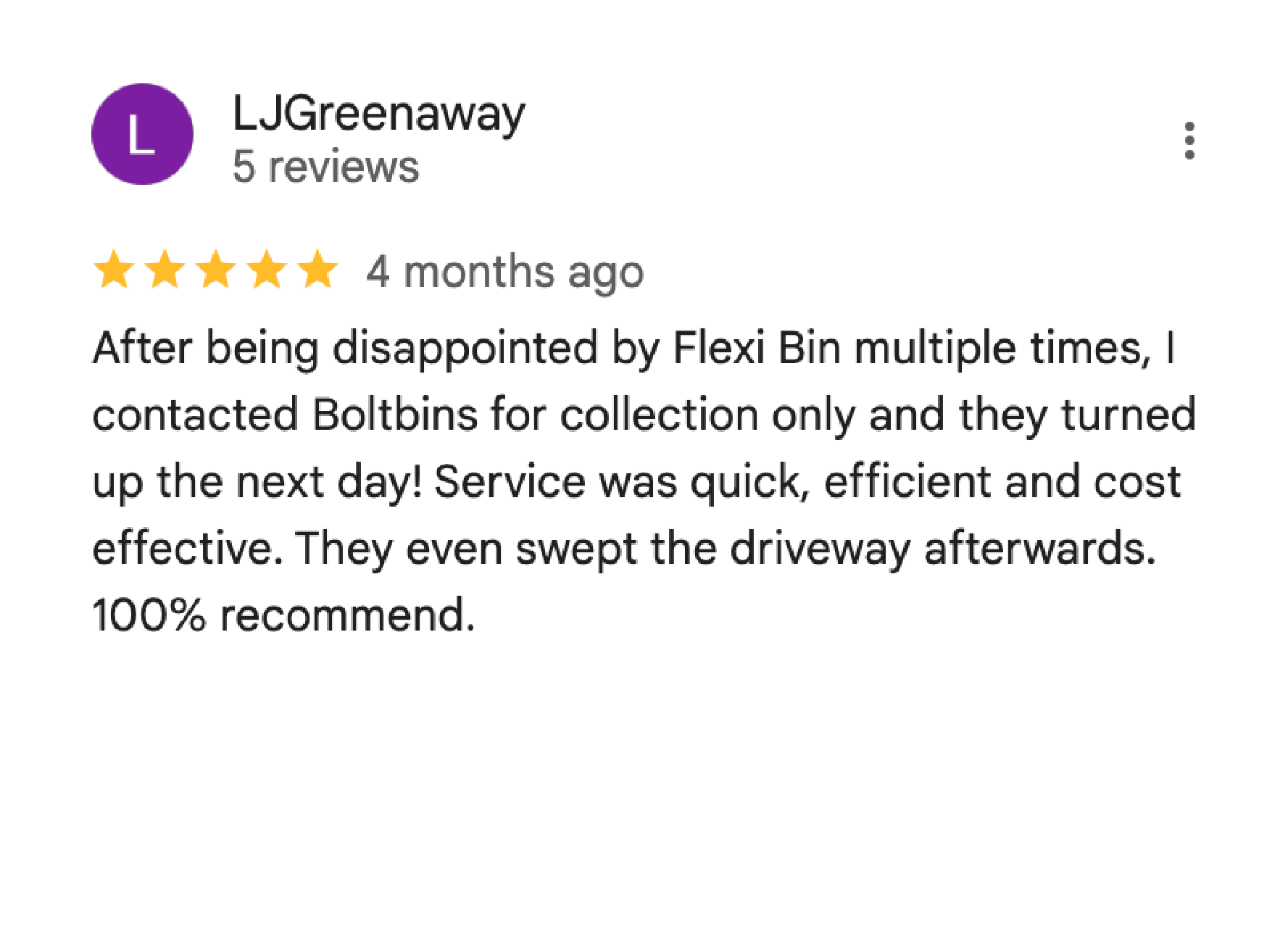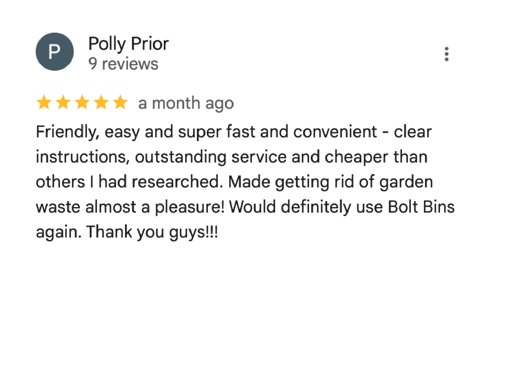If you want the easiest, fastest way to clear garden waste, Bolt Bins are hard to beat. One price, no hidden fees, no rush to fill, and the freedom to place your bag almost anywhere. We offer same-day delivery and collection, 7 days a week, and with 130+ five-star reviews, you know your green waste is in good hands.