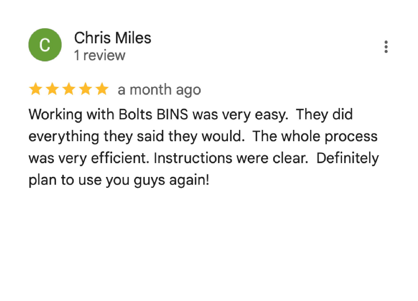 Options from $130Bolt Bins are heavy-duty skip bags. They arrive flat-packed to your place; you just fill them at your own pace and schedule a pickup when you’re ready. There are no weight limits or permits needed, and you can place them on any site, driveway, or tight-access spot – giving you maximum flexibility and ease of use.