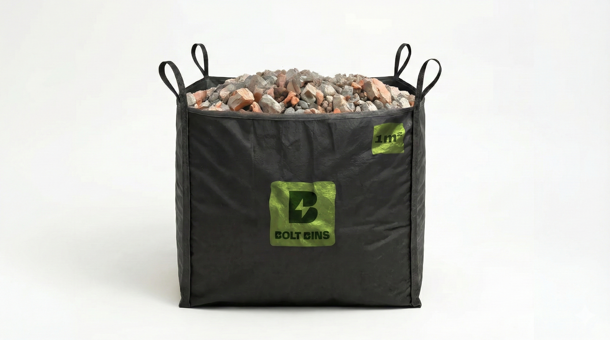 The 1m³ Bolt Bin measures 1 metre long, 1 metre wide, and 1 metre high. It’s perfect for small cleanups, green waste, or clearing out a few rooms.